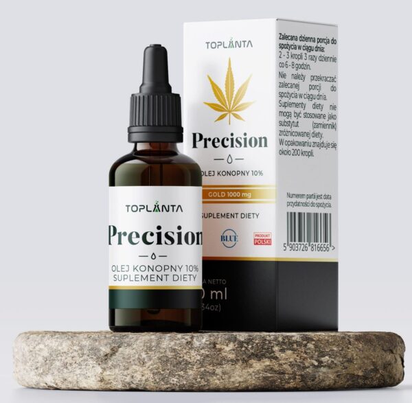 Precision zawiera kwasy tłuszczowe omega 3 – 6 – 9 oraz pełne spektrum wystepujacych w konopiach fitosubstancji w ilosci minimum 1000 mg.